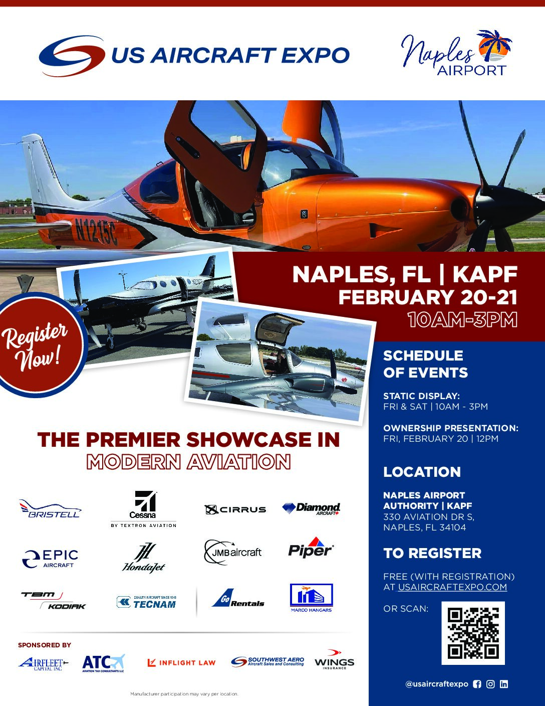 - DAY ONE – FRIDAY: Day one at @USAIRCRAFTEXPO in Naples, FL (KAPF) is in progress. Don’t miss our showcase of aircraft on display from 10 a.m. – 3 p.m. today and tomorrow.